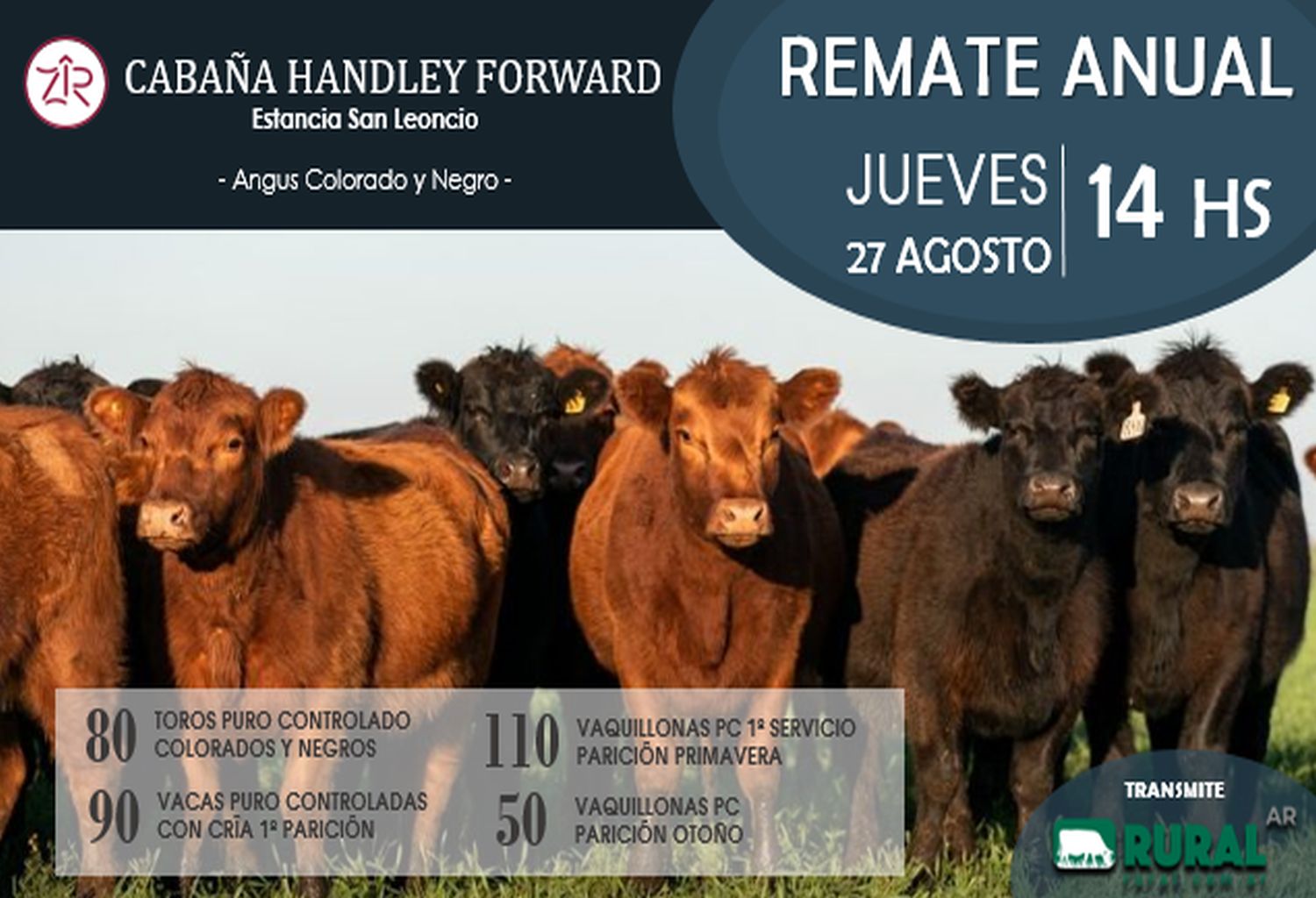 Lo invitamos a participar del Próximo Remate de Cabañas Handley Forward, Jueves 27 de Agosto en Sociedad Rural de Mar Chiquita Ruta 2 KM 346, Coronel Vidal. No se suspende por lluvia. Remata Colombo y Colombo y Marcelo Schang Haciendas